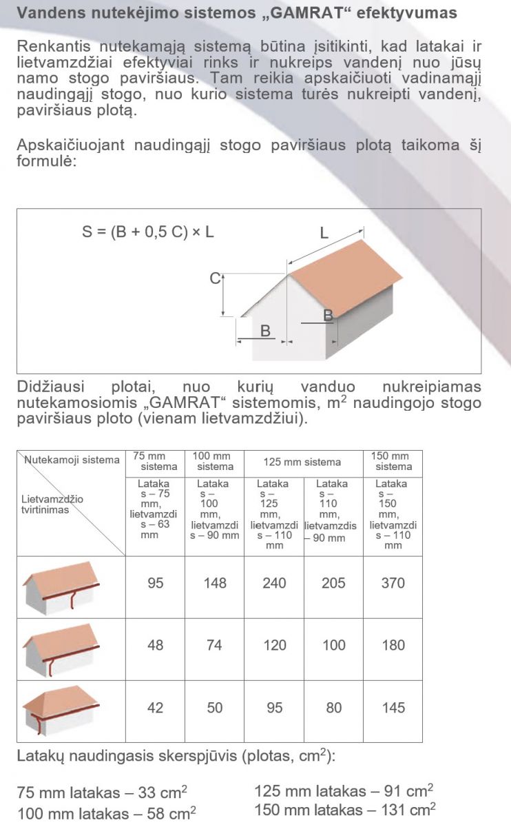 Retai gamintojų siūlomas gilus latakas užtikrina didelį sistemos talpumą ir pralaidumą. Tradicinės formos sustiprintas latakas užtikrina reikiamą standumą.