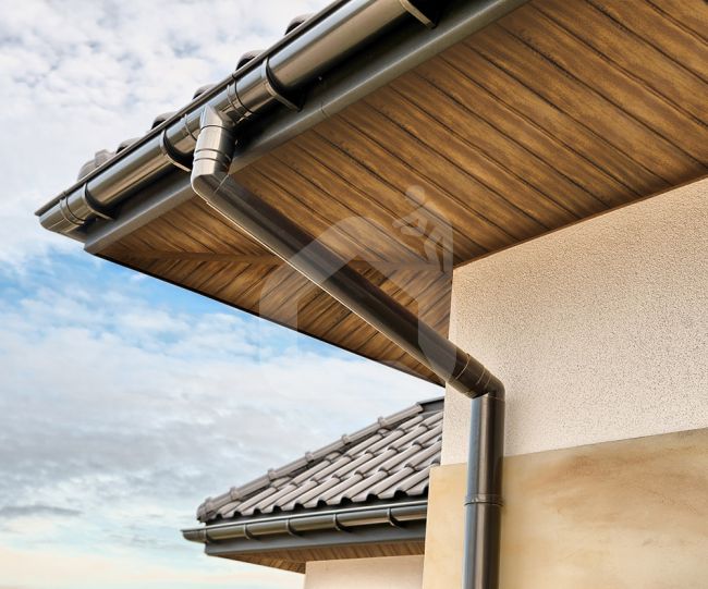>Sistema 75 (75 mm latakas su 63 mm lietvamzdžiu). Paskirtis: pavėsinės, stoginės, garažai, balkonai.