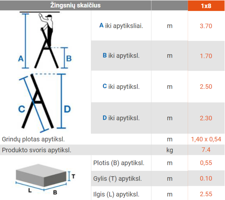 - 250 mm gylio profiliuoto aliuminio saugos viršutinė platforma su neslystančiais įdėklais;