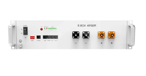 „E-Box-48100R-C“ baterijų sistema susideda iš dviejų komponentų: montavimo rėmo ir baterijos bloko. Montavimo rėmelių pagalba baterijos lengvai ir paprastai sumontuojamos viena ant kitos ir lygiagrečiai sujungiamos galios ir komunikaciniais kabeliais.