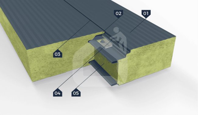 - Kietos mineralinės vatos šerdis, pasižyminti labai geru atsparumu ugniai ir garso izoliacija.