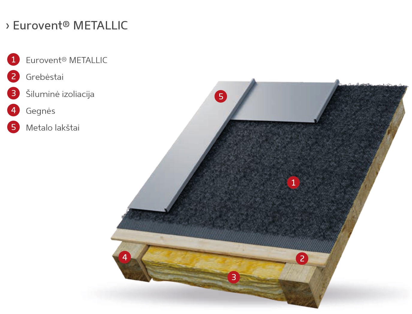 Plėvelė METALLIC naudojama dengiant šlaitinius ventiliuojamus apšildytus stogus, tame tarpe stogus su ištisiniu apkalimu, dengtus bet kokia metaline danga su stačiu falcu. Plėvelė METALLIC taip pat gali būti naudojama metaliniuose ventiliuojamuose ir neventiliuojamuose fasaduose kaip drenažinis ir ventiliuojamasis sluoksnis. Dėka gamyboje naudojamo vientiso polipropileninio aprišimo, turinčio atskiriančio sluoksnio paskirtį, gavome ertmę, įgalinančią pilną ventiliaciją ir vandens bei drėgmės nuvedimą iš po metalinės stogo dangos dalies, kas turi svarbią reikšmę stogo ilgaamžiškumui. Dėka stogo plėvelės METALLIC naudojimo, dengtų metaline danga stogų ilgaamžiškumas prasitęsia mažiausiai keletu metų. Naudojant šią plėvelę nereikia palikti ventiliacinio tarpo tarp jos ir termoizoliacijos (mineralinės vatos, stiklo vatos ir pan.), t.y. leidžiamas betarpis plėvelės ir termoizoliacijos susilietimas.