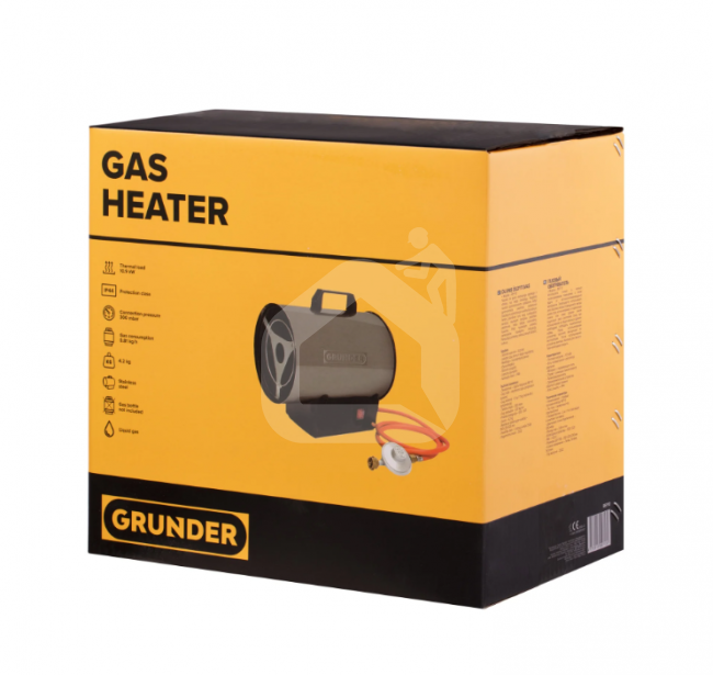 Grunder REF 10 yra kompaktiškas dujinis šildytuvas, skirtas šildyti ne buitinės paskirties patalpoms, tokioms kaip sandėliai, ūkio erdvės, gamyklos ar kitos pramoninės erdvės. Šildytuvas veikia naudojant butaną ir propaną, užtikrinant greitą ir efektyvų šildymą, todėl pamiršite varginantį malkų kūrenimą. Įrenginio našumas – 500 m³ per valandą, todėl jis puikiai tinka vidutinio dydžio patalpoms. Komplekte yra dujų reduktorius ir žarna, todėl šildytuvą lengva prijungti ir pradėti naudoti.