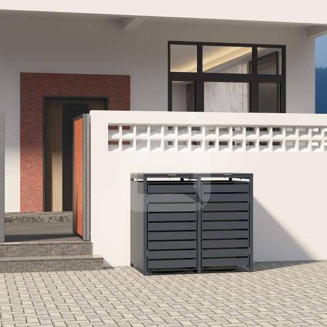Šiukšlių konteinerių pastogėje telpa du 60, 120 arba 240 litrų talpos šiukšlių konteineriai. Pastogės rėmo matmenys yra 132x80x116 cm. Dėl šios pastogės jūsų šiukšlių konteineriai bus nepastebimi ir visuomet tvarkingai sandėliuojami. Gaminys turi dangtį, todėl norint ką nors išmesti nereikia išstumti konteinerio, kadangi komplektacijoje yra kabliukas ir virvutė, kuriais galima pritvirtinti šiukšliadėžės dangtį prie pastogės dangčio.