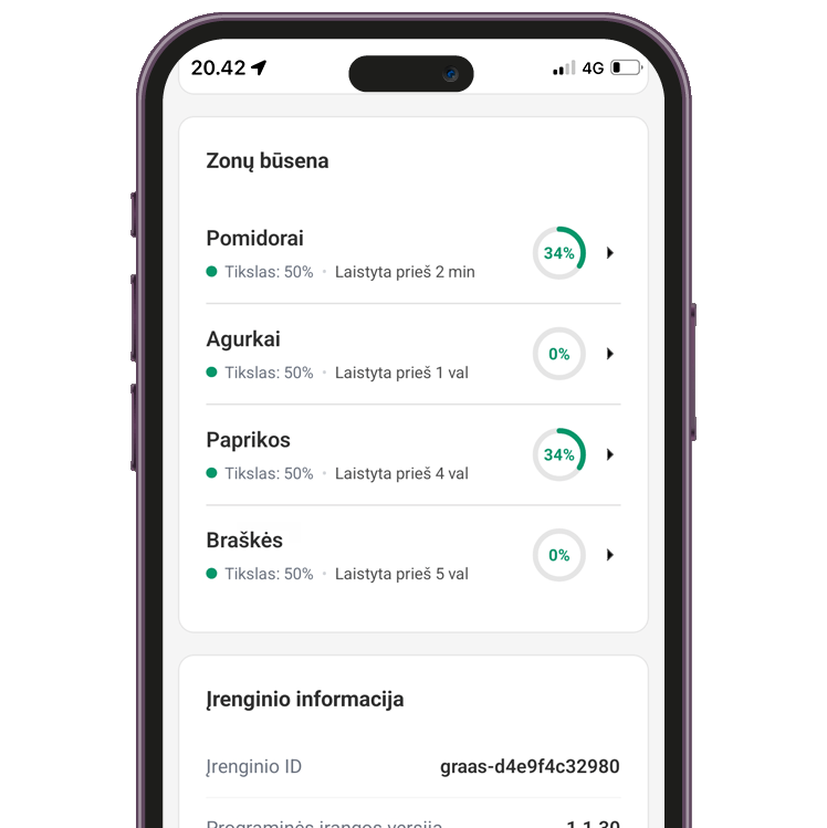 Tai ypač patogu, jei esate išvykę – GRAAS iRigator užtikrins nepriekaištingą ir stabilų šiltnamio laistymą.