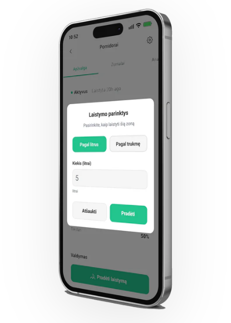 Nuo realaus laiko duomenų iki automatinio laistymo tvarkaraščių - viskas vienoje vietoje.