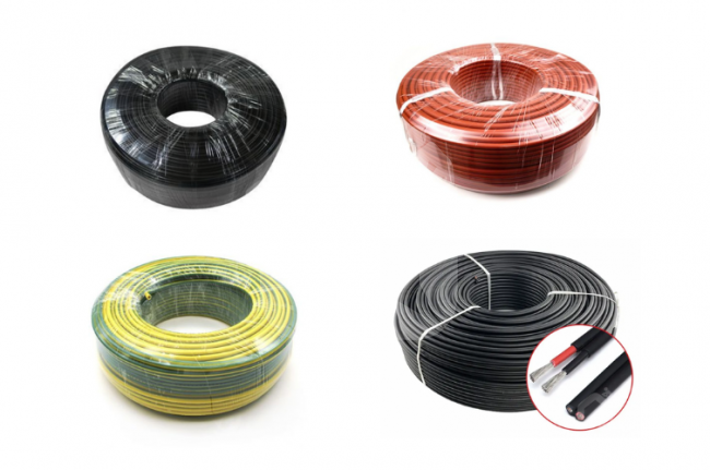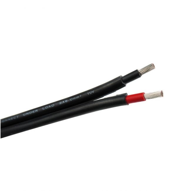 Kabelių rūšys: PV kabelis 4 mm2, juodas / raudonas; Dvigubas PV kabelis 4 mm2; Įžeminimo kabelis 6 mm2 / 10 mm2