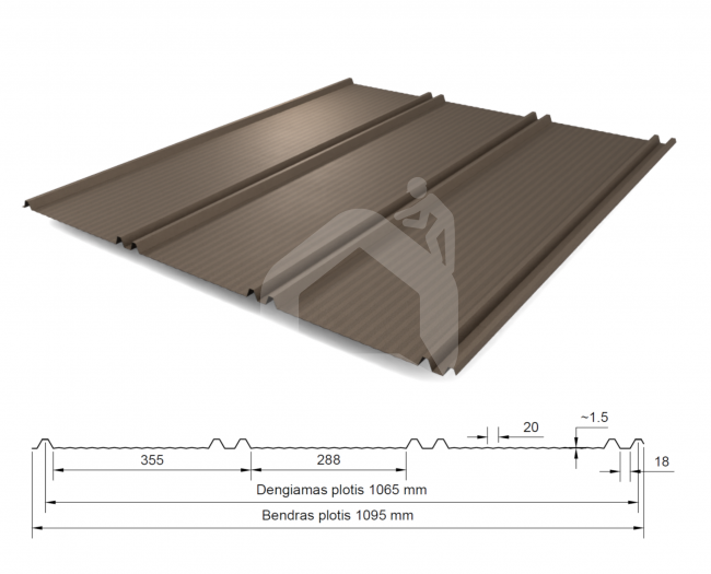 Pagal užsakymą gaminamas stoginis profilis SIMPLA-3 gali būti su iškarpomis arbe be iškarpų.