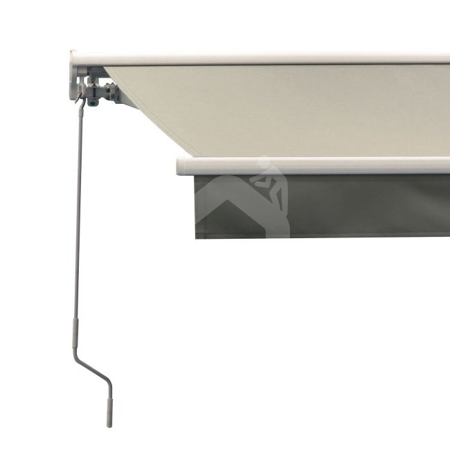 Pusiau kasetinė markizė su rankine pavara, taupe spalvos. Markizė apsaugo ir nuo kaitrios saulės, ir nuo nedidelio lietaus, o kartu yra stilingas dizaino elementas. Markizė tvirtinama prie sienos. Jos danga: poliesterio audinys su apsauga nuo UV spindulių 300 g/m². Suvyniotas užvalkalo audinys yra kasetės viduje ir yra gerai apsaugotas nuo oro sąlygų, išlieka švarus ir ilgiau tarnauja. Tentas turi 1,6 m ilgio rankinę rankeną. Žiūrint iš priekio, rankena yra kairėje pusėje, jos padėties keisti negalima. Markizės aliumininis rėmas padengtas balta milteline danga.