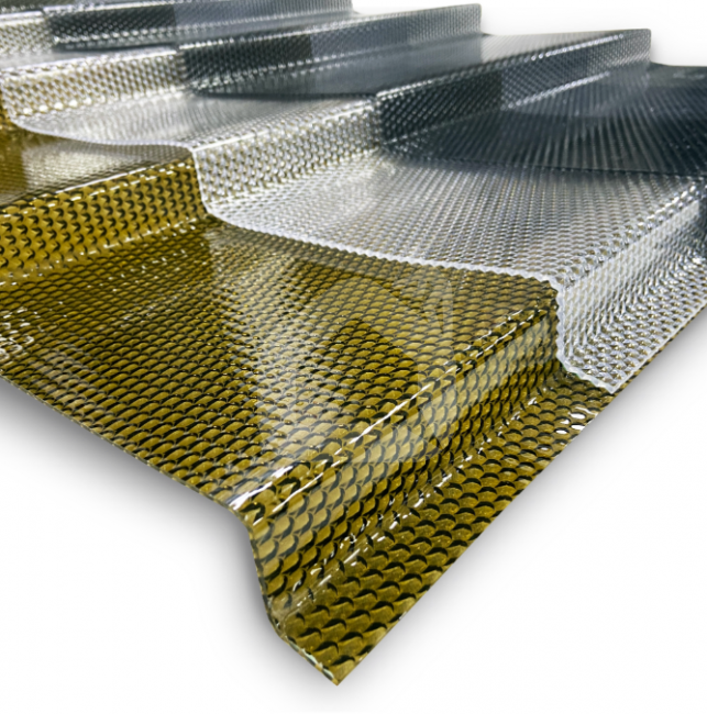 MK PC DIAMOND TILE EFFECT čerpinė polikarbonato danga, 15°, skaidri