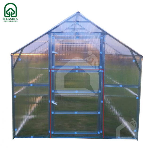 - Jei jau turite surinktą šiltnamį ir norite įsigyti bei įsidėti papildomas duris šiltnamio gale, turite pasirinkti, kad durys būtų su 6 mm storio danga.