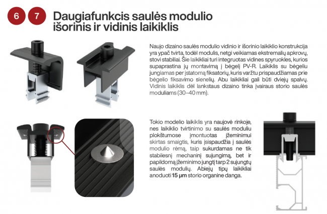Laikikliai tinka 30 mm storio saulės moduliams.