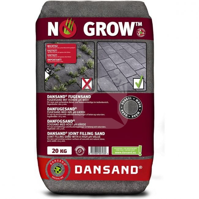 Paprastas paplūdimio smėlis sudarytas iš apvalios formos grudelių. Šie apvalios formos grūdeliai negali susijungti vienas su kitu ir tinkamai nusėsti grindinio siūlėje. Dansand kvarcinis smėlis yra sudarytas iš įvairaus dydžio kampuotos formos grūdelių, kurių dėka produktas gerai susitankina. Jis užtikrina stabilią, patvarią ir lanksčią siūlę. Šis siūlių užpildymo mišinys puikiai tinka tiek naujai paruoštiems, tiek ir renovuojamiems grindinio paviršiams, pvz., terasoms, pėsčiųjų takeliams ar nedidelio intensyvumo lengvųjų automobilių keliams. NO GROW mišinys sudarytas iš plauto ir džiovinto kvarcinio smėlio, į kurį papildomai įdėta natūralių mineralinių medžiagų, turinčių aukštą PH vertę. Dėl aukštos PH vertės piktžolių sėklos išdžiūna, todėl nebegali įsišaknyti ir sudygti. Mineralinės medžiagos tirpsta labai lėtai ir visiškai gali išsiplauti tik po 10 metų lietaus. Teisingai naudojant Dansand siūlių užpildymo mišinį, jūs gaunate puikų rezultatą, kuris išlieka daugelį metų.