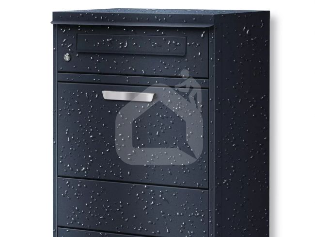 Siuntų dėžutė sukurta taip, kad tarnautų ilgai ir būtų atspari bet kokioms oro sąlygoms. Dėžutės paviršius padengtas milteliniu būdu, todėl ji atspari lietui, sniegui, saulės spinduliams bei temperatūros svyravimams. Ši savybė garantuoja, kad siuntos ir korespondencija visada išliks sausos ir saugios.