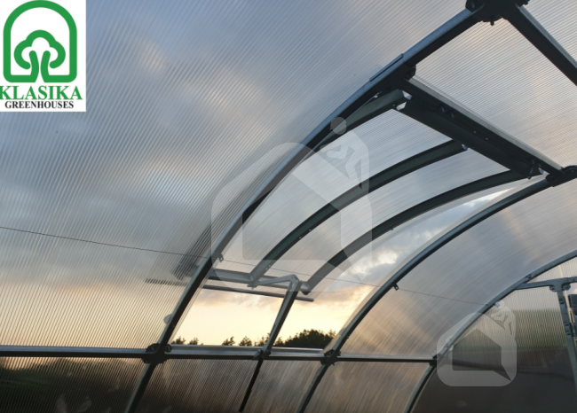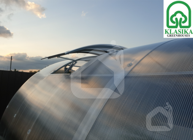 Stoglangis su polikarbonato danga KLASIKA TUBE šiltnamiui. Galima komplektacija su automatiniu atidarytuvu arba be.