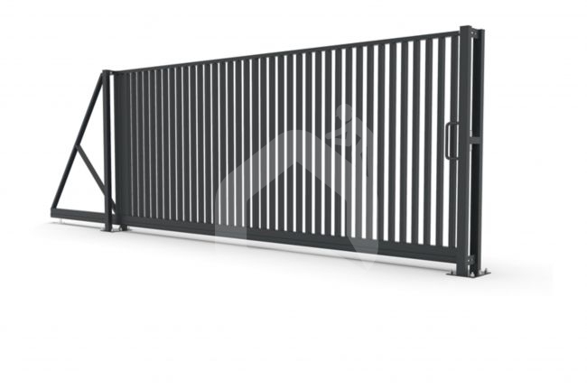 Vartų komplektacija: metalinis rėmas, kolonos - 2 vnt., vežiamukai - 2 vnt., gaudykės - 2 vnt (viršutinė ir apatinė), gembė, dangtelis, galinis ratukas, palaikomi ratukai - 2 vnt., 1 spynos komplektas (rankena, spyna, gaudyklė).