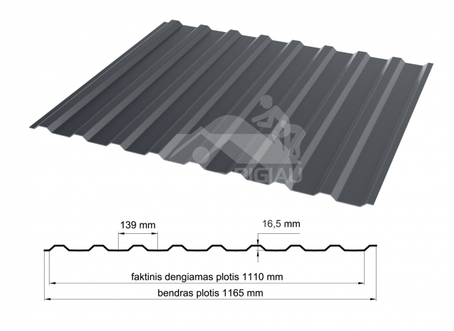 Lapų išmatavimai: 1165 mm x 2500mm / 3000mm