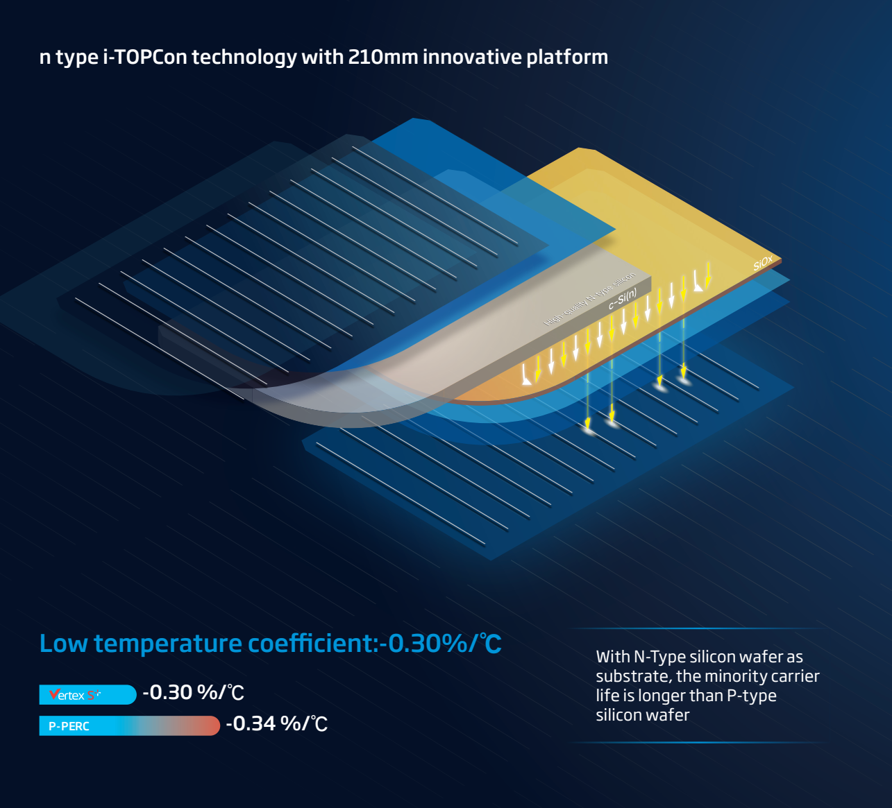 Veikimas: N-tipas (TOPCon)