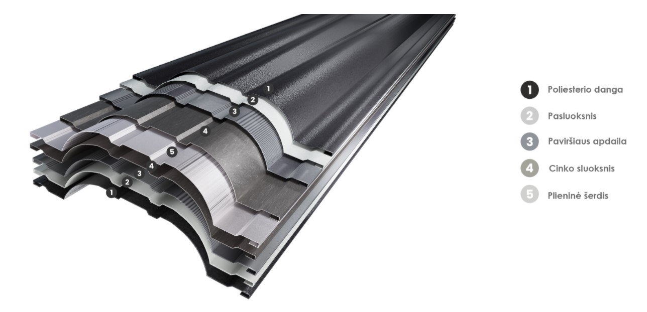 Padengimai: RAL7016 (tamsi grafitinė), poliesteris, tiesūs galai