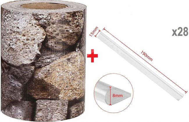 Rulono ilgis – 35 m, aukštis – 19 cm. Juostas galima lengvai kirpti ir pritaikyti pagal poreikį. Montavimas paprastas – tvirtinamos klipsais.