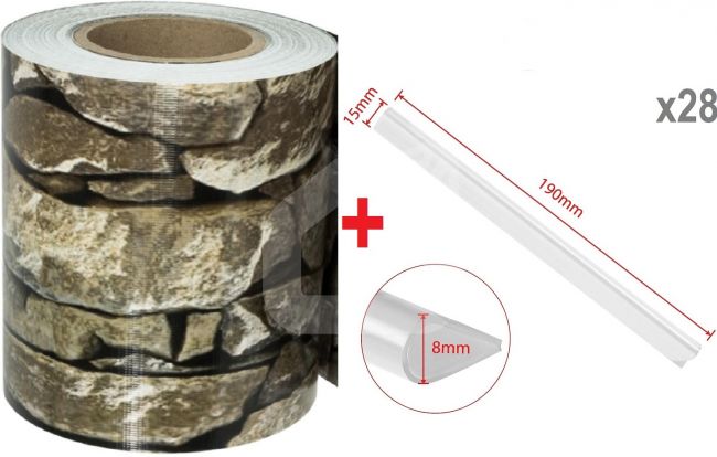Rulono ilgis – 35 m, aukštis – 19 cm. Juostas galima lengvai kirpti ir pritaikyti pagal poreikį. Montavimas paprastas – tvirtinamos klipsais.
