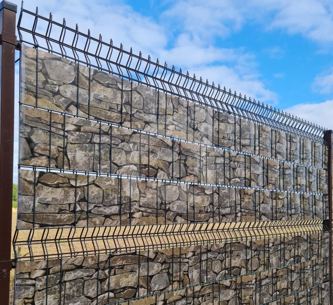 Segmentinės tvoros juosta Stein Optik pagaminta iš tvirto, UV spinduliams atsparaus PVC (450 g/m²), todėl yra ilgaamžė ir lengvai prižiūrima. Akmens imitacijos dizainas suteikia natūralų ir estetišką vaizdą. Tinka 2D ir 3D segmentinėms tvoroms, taip pat balkonams ar pertvaroms.