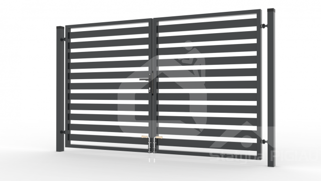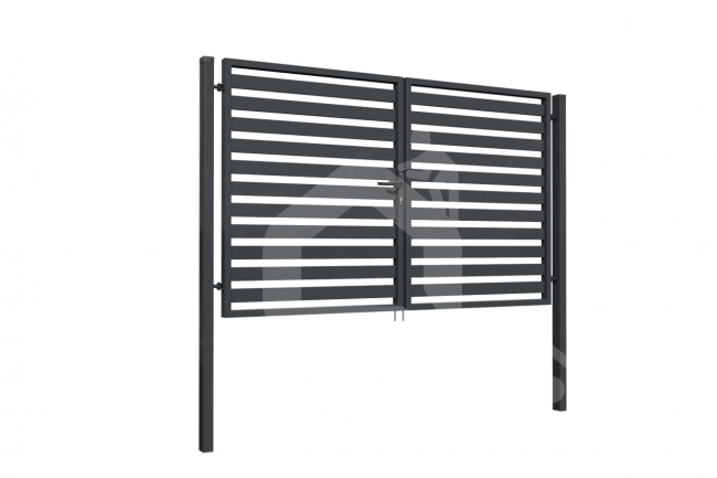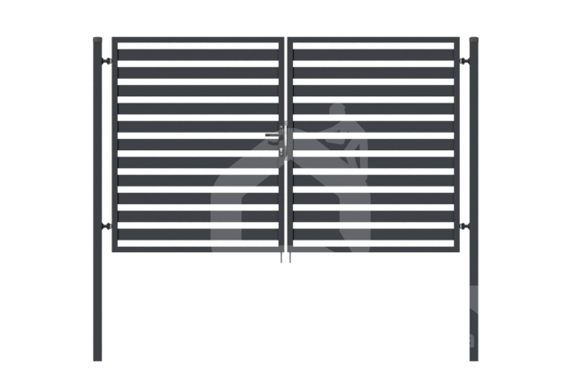 Vartų komplektacija: metalinis vartų rėmas 60x40x1,5 mm - 1 vnt., kolonos 80x60x2 mm - 2 vnt., dvipusis atidarymas, spynos komplektas (spyna, rankena, gaudyklė, raktai), vyrių komplektas, varčios 2 vnt.
