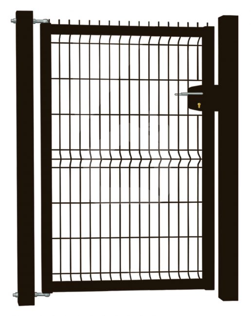 Varteliai atveriami, viengubi, su stulpais, užraktu, spyna ir reguliuojamais vyriais. Užpildas: suvirintos vielos segmentas, akutė 200x50 mm, viela 4 mm.