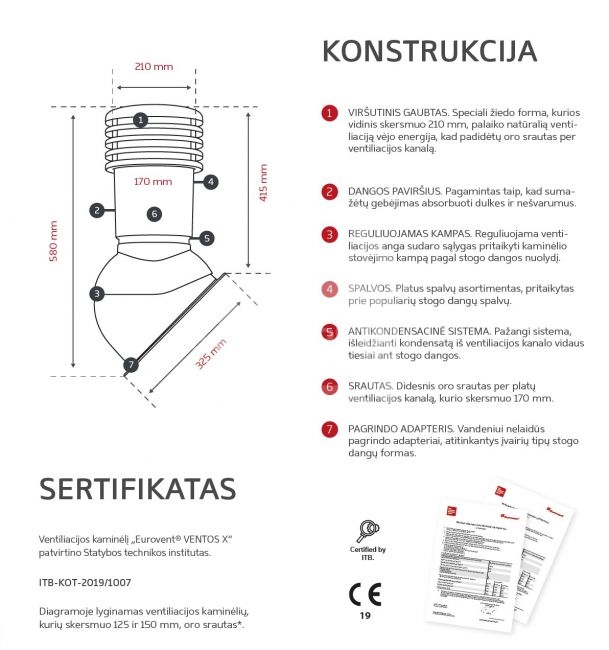 | Komplektas | pagrindas, prisitaikantis stogo dangai, elementas, varžtai, montavimo instrukcija |