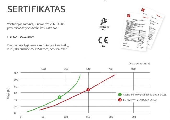 Pažangus universalus ventiliacijos kaminėlis, kurio ventiliacijos anga net 150 mm.