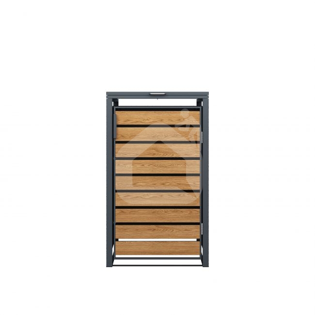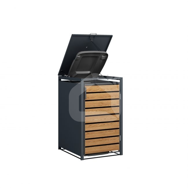 Vienvietė šiukšlių konteinerio pastogė MIKKO, pilka / medžio imitacija