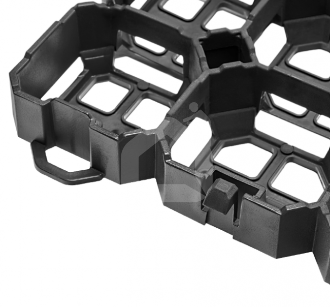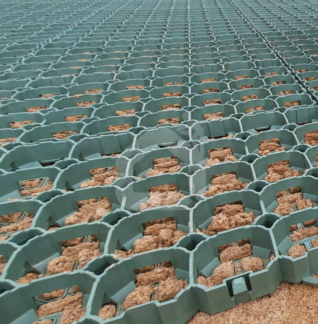- Tvirta struktūra: Pagaminta iš aukštos kokybės perdirbto plastiko, atsparaus apkrovoms. Korių tarpai leidžia žolei natūraliai augti, kartu stiprinant paviršių ir apsaugant jį nuo deformacijos.